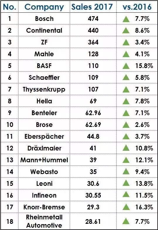 As is known to all, German auto parts companies enjoy a high reputation worldwide and 3 of the top 10 automotive parts companies in the global auto parts company's 2018 list are from Germany. Therefore, the performance and development trend of German counterparts are of important reference significance for Chinese competitors.