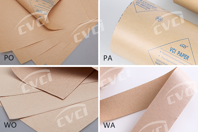 將VCI(氣相緩蝕劑)含浸于平紋或皺紋中性原紙上起到防銹目的,在中性防銹原紙上可通過復合PE層起到防水包裝目的。其中,VCI起防銹作用,平紋或皺紋原紙為載體,PE層加強防水防潮功能。我們的防銹紙可按用戶要求提供印刷服務。產品滿足標準QB/T 1319或JIS Z 1535要求。