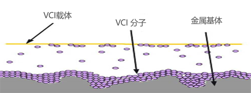 對(duì)在腐蝕性介質(zhì)中的金屬材料及其制品,需采用各種不同的防腐蝕技術(shù),以延長(zhǎng)金屬制品的使用壽命,保證工藝設(shè)備的安全和順利運(yùn)行。其中氣相防銹技術(shù)在環(huán)保、高效、應(yīng)用場(chǎng)景廣泛等方面都具有得天獨(dú)厚的優(yōu)勢(shì),氣相防銹技術(shù),即指防銹防護(hù)材料中具有揮發(fā)性的氣相緩蝕劑,在常溫常壓下能夠緩慢氣化,揮發(fā)出來(lái)的緩蝕劑氣體自動(dòng)吸附在裸露的金屬表面,形成分子級(jí)厚度保護(hù)層,能夠有效防止氧氣、濕氣等環(huán)境氣氛對(duì)金屬的腐蝕。由于氣相緩蝕劑持續(xù)揮發(fā),能夠在封閉空間內(nèi)始終處于“飽和”狀態(tài),因而可達(dá)到長(zhǎng)期、穩(wěn)定、優(yōu)良的防銹防護(hù)效果。