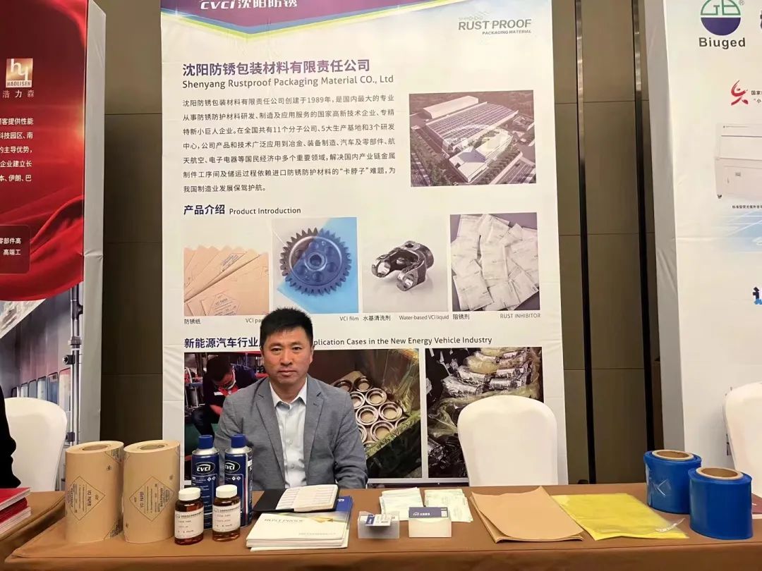 在會(huì)場(chǎng)外展區(qū),沈陽(yáng)防銹包裝材料有限責(zé)任公司將適用于新能源汽車的各類防銹包裝產(chǎn)品呈現(xiàn)在各參會(huì)單位面前,受到了大家的廣泛關(guān)注和一致好評(píng)。